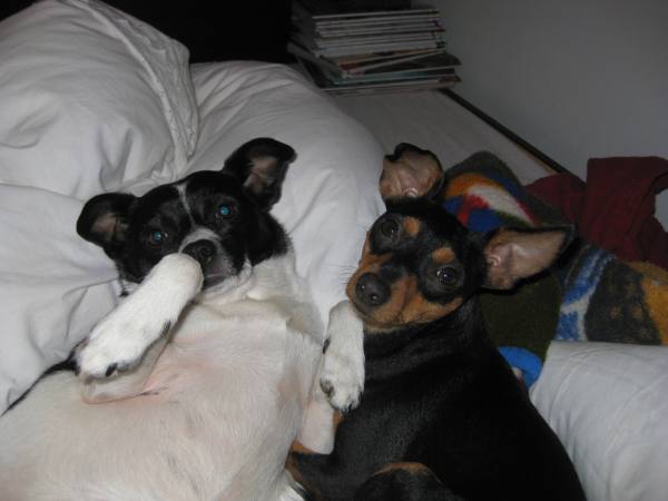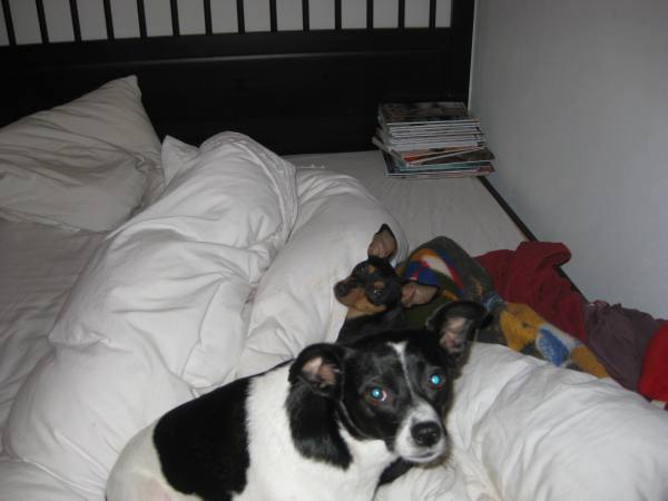 Nr. 037: Perelka und Missi im Bett von Luzie. Die beiden Hunde schlafen ja getrennt und es ist so süss, wenn derjenige, der als erstes aufwacht, die andere besucht, aufweckt und praktisch zum Kloogehen abholt.
