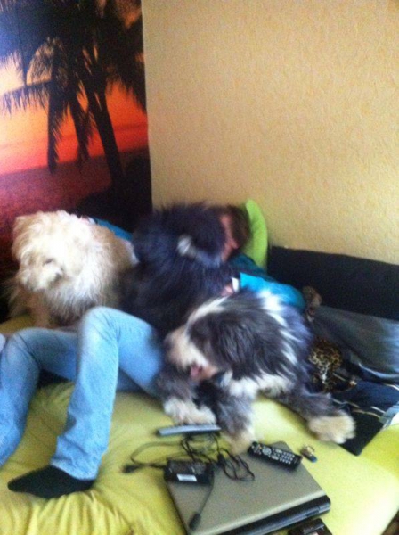 Marvi ist groggi den ganzen Tag draussen gewesen. Viel gesehen und erlebt und erschnüffelt.. Sogar im Wasser war er.