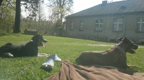 Auch unsere zwei Welpen, die jetzt die Namen von unseren Tierpflegerin - Ania und Emilka- tragen, sind geimpft worden und dürfen in einen Welpenauslauf nach draussen. Die Seniorin Chicka - Hündin von Ania- hat auch sofort die Mutterrolle übernomen und kümmert sich um die Erziehung von den Welpen. Auch Emila- unsere neue Tierpflegerin- die von den ersten Tag sich um die Welpen gekümmert hat- spielt gerne mit den kleinen, die Emilia vergöttern.