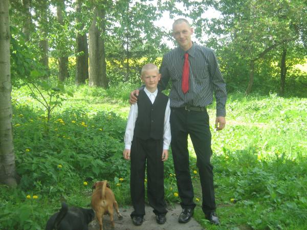 Auch möchte ich mich herzlich bei Fr. Sabine Hruschke bedanken, die den kleine Kacperek - Sohn von Jacek- ein wunderschönes Geschenk zum den Ersten Komunionstag, gemacht hat. Die liebe Sabine hat den kleinen Kacperek ein tollen Anzug mit weißen Hemd und Kravatte gekauft. Der kleiner Knacperek war überglücklich und wollte sein neuen Anzug der ganze Welt zeigen, inclusiv unseren Pusiahunden.