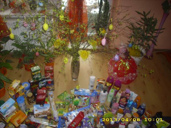 Liebste Freunde!! Alle die tolle, bunte " Ostereier", die Ihr uns in Rahmen unsere " Osteraktion" zugeschickt habt, sind schon in Pusia. Zwar ein paar Tagen nach Ostern ( am Sonntag), aber die Freude war sehr, sehr gr0ß. Unsere Tierpfleger haben sich sehr gefreut und waren ganz baff, das so viele fremde Menschen haben so herzlich an sie gedacht. Alle unsere Hunde haben gerecht die Leckerlies verteilt bekommen. Und alle haben sich sehr, sehr gefreut. Unsere Pusiahunde und unsere Pusiamenschen. In Namen von unseren Hunden und unseren Tierpflegern möchte ich mein herzlichen Dankeschön an alle die fantastische Menschen, die so viel Freude unseren Hunden und Menschen germacht haben, ausprechen. ♥