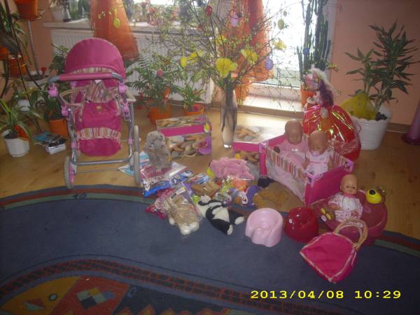 Auch die kleine Samanta hat viele tolle, neue Spielzeugen und Süßigkeiten bekommen. Die mussten auch gleich ausprobiert werden.