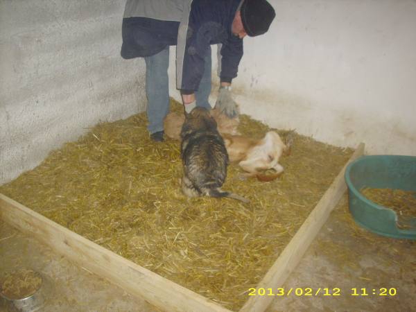 Da der Onkel Frost hat sich wenigstens teilweise von Pusia veabschiedet, könnten die Bauarbeiten in Pusia wieder aufgenomen werden. In den zweiten, von den Amtsveterinär vorgeschriebenen Welpenzimmer ist eine neue Heizung angebracht worden ( war vorher keine), die Wände und Decke wurden gedämpft und mit Gipsplatten verlegt, Fenster abgedichtet und ein neuen Zementboden gegossen worden.